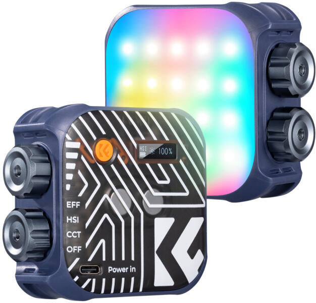 K& F Concept RGB LED lámpa, 2500-9900K, CRI 96+, 2000mAh, 21 fényeffekt (kék) (KF-34-036V2)